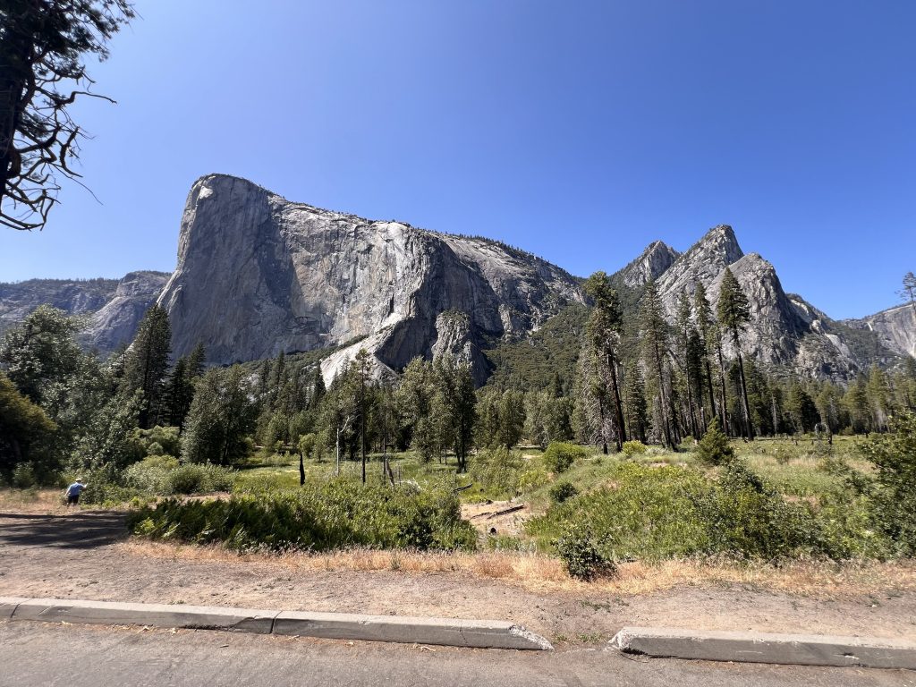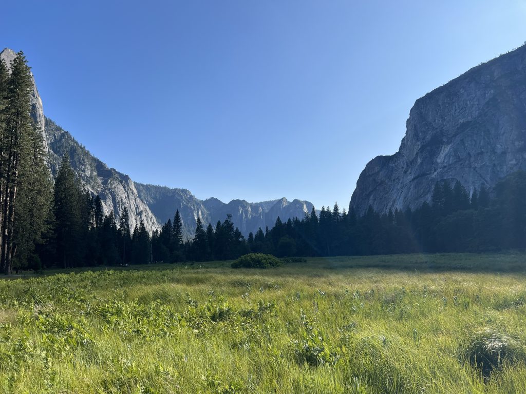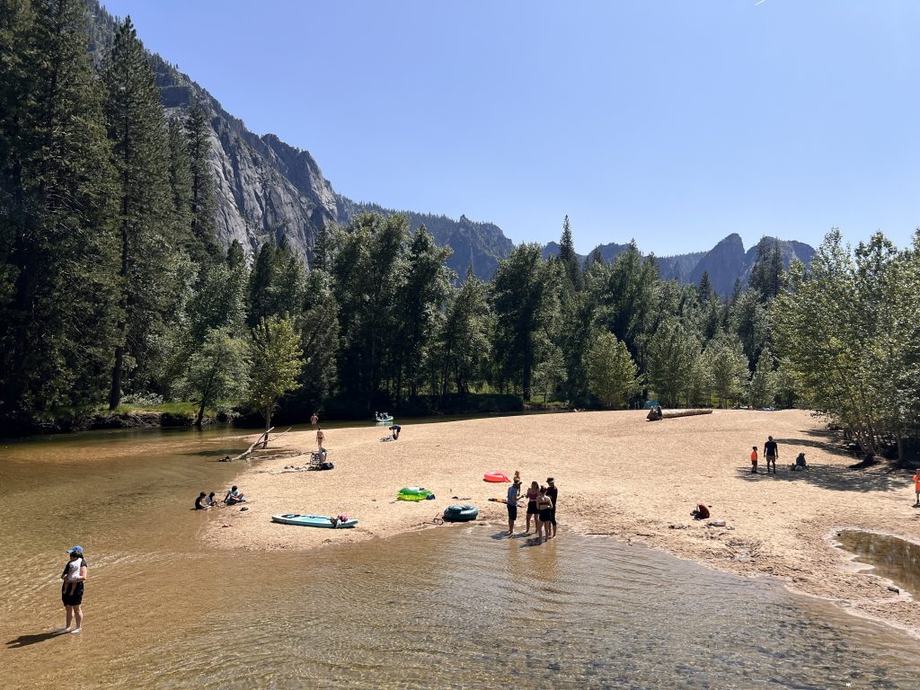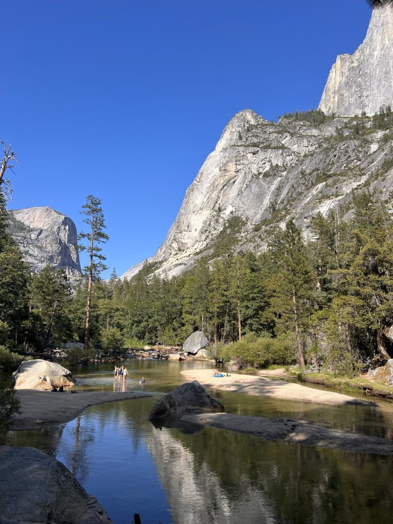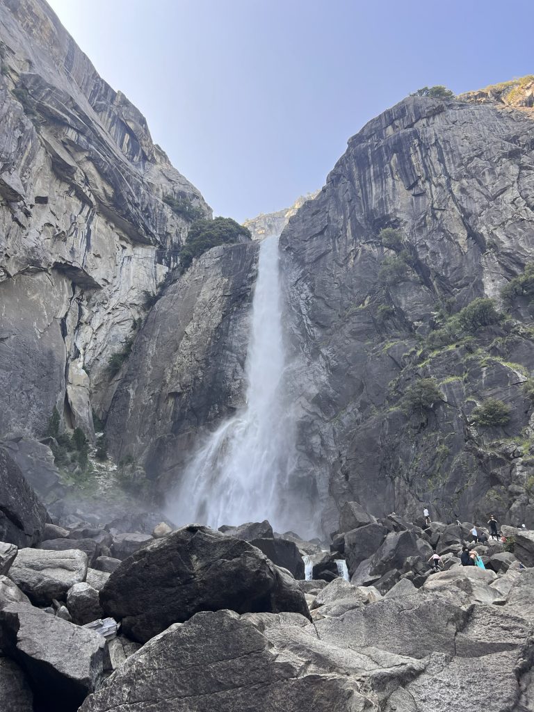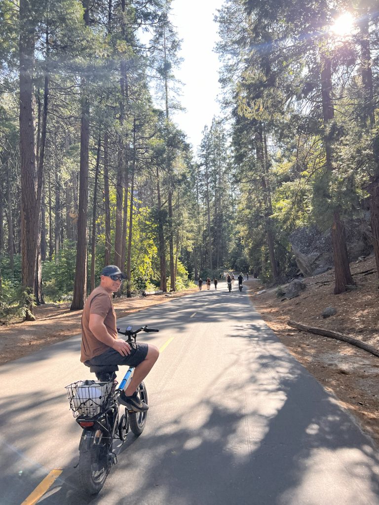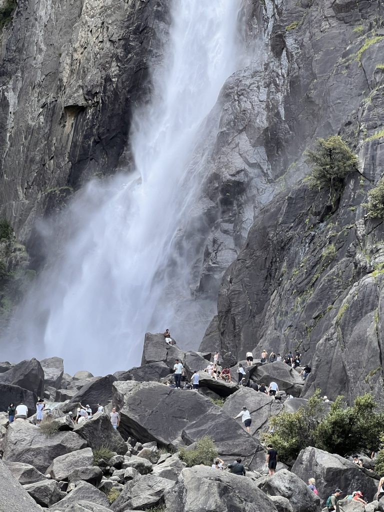 This being our first time here, we did not plan to take any specific hikes,  our goal was just to see it in person and experience just being inside this park and we did just that; we rode all the way in, saw the bottom of Yosemite Fall viewing point, enjoyed some ice cream in Curry Village, saw the bottom on Vernal Fall, enjoyed the Glacier Meadow on the way back and just took it all in watching the people swim in that cold water and all.
