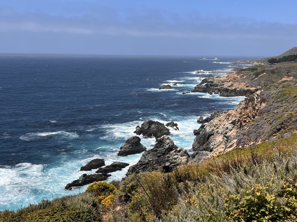 This trip thus far, we have stayed in several “woodsy” places, this one tops them all because it feels like camping inside a forest. We were all just in awe as we finally pulled into our site, the magnificent trees around makes you feel like ferries living in the forest. Upon settling in, we hopped on our ebikes and rode 2 miles down via Sycamore Canyon Road to Pfeiffer State beach. The road is very narrow and windy, and the parking lot is small so I’m glad we had our bikes and I’m glad they are powered for sure; it is a straight down and a straight back up type of ride.