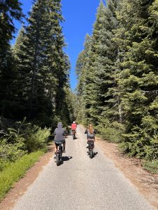 We loved to see how many are standing but also sad how many are not.. We did read in the Giant Forest Museum about how that is the normal cycle but it was still a sad sight to see how many trees are on the ground. After passing the entrance gate, we stayed on the main road and stopped in several scenic spots in both Sequoia and Kings Canyon  before heading to our campground for the night. I booked a site at Big Meadow (recreation.gov) a long time ahead thinking it would be fully booked in mid June but it wasn’t; we actually passed many other campgrounds and many sites available. Arriving at our site, it was a little tight, not even so we had to put out the blocks, bugs everywhere, but it was in Sequoia so it was beautiful. We unloaded the bikes upon arrival and went on an amazing ride until it started to get dark so we turned around  to be sure we arrived back to camp safely.
