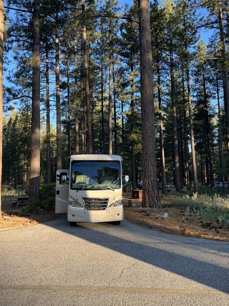 Finally made it to our campground and to our surprise, it was packed! Not only was the campground full, that section of the campground was lively because they have a  coffee shop and a lovely ice cream parlor that we visited not once, but twice!. RV Village Campground at Camp Richardson Resort is the place to camp! This place has water and power so it does cost a little more but what a treat it was to stay here; all four of us  wished we could have stayed here another night; the kids especially because of internet bars on their phones here were full. Beach access to the lake is just across the street too  and it’s just a short ride to the main town from here. Did I mention the ice cream? You get a whole lot of ice cream here so be ready.