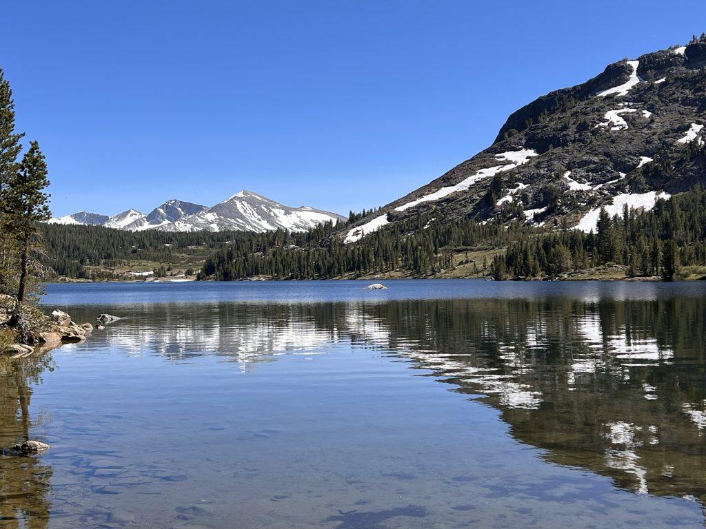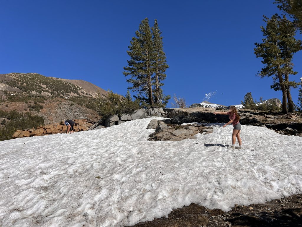 Tioga Pass gave us Yellowstone flashbacks: there is so much beauty to see and it makes you feel like you are driving through different regions in the same trip. We saw a beautiful waterfall, we saw deer out playing in the meadow, we saw a beautiful clear lake, we saw mountains that looked like the badlands, and we saw snow! Yes, in late June, we had a snowball fight on the Tioga Pass. Driving here made us feel like we were on the Small World ride at Disneyland; you drive along and you are in completely different regions and ALL of them are absolutely beautiful. What a treat this drive is, all the way through the exit and beyond.