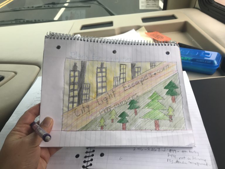 During covid year with a lot of extra time in our hands, as a family project, we fully converted a cargo trailer in to a camping trailer where we rented it online and was able to be a part of many families’ camping adventures. This trailer was fully stocked so all you needed to add was food and clothes. We ultimately sold it years later to our neighbor so we still get to look at it and remanence in all the fun and joy we experienced with the mini V as we called it. You can see our first trailer here. Our daughter designed a logo (above) on one of our trips and as a family we came up with the name City Lights Escape while we could literally see the city lights in the distance from our favorite campsite at Prado Reginal Park.