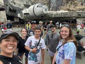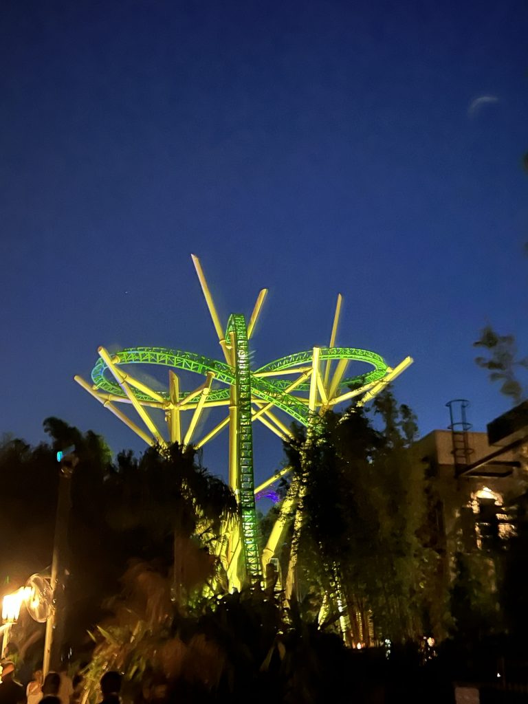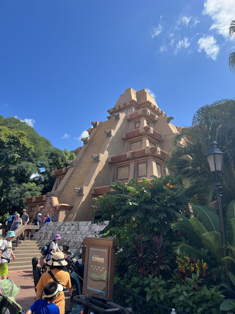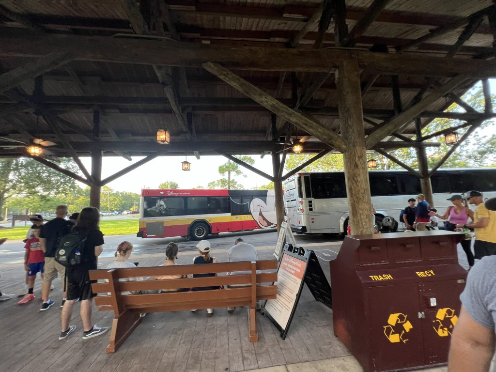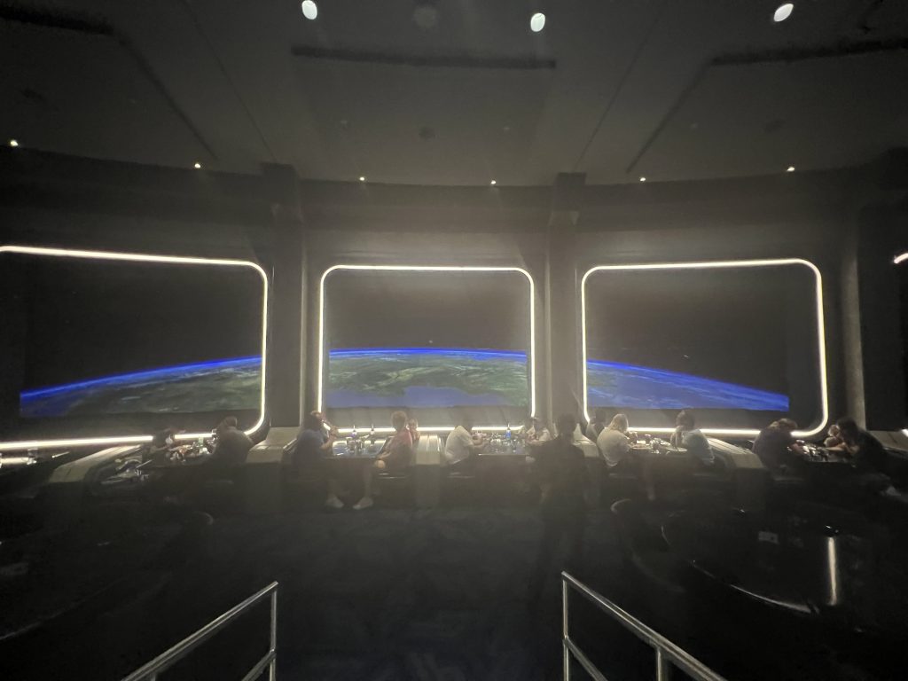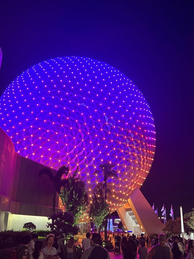 Day four was Epcot day. I did a lot of research before we left and I learned that there’s a better entrance we can use entering through the International side so that’s what we did and it worked! We went right in with no lines and used our extra hour so we went straight to Remy’s Ratatouille ride with no lines! I also learned that you can access this entry side via the Skyliner so we rode the bus to the Hollywood Park first then from there, we hopped on the Skyliner, and we exited right in front of the International entrance at Epcot. Entering this part of the park also allowed us to see that whole side of the park with minimal people around until midday AND we enjoyed a cool sky ride too. We met up with our family who joined us for the day and it was great. For our “one meal” I made reservations very far in advance so we could experience a wonderful lunch at Space 220. This place makes you feel you dining in space with the themed elevator and surroundings. Inside the restaurant, there are big windows with astronauts floating around and a huge image of earth so it makes you feel like you are in space looking down at earth. The food was costly but delicious. We made reservations for lunch so we could get the same experience and the lunch specials. Epcot has our favorite ride out of all four parks, Guardian of the Galaxy: Cosmic Rewind. What a wonderfully made ride! You have it all, speed, spins. visuals , sounds, all in one greatness. We loved it so much we actually paid to ride it again (it was a ticketed entry at the time). Everything else in this park was also amazing. This one was our favorite park out of the four main ones. Heading back home, we took the bus and we made it back to the campground station quickly but then we waited almost 40 minutes for the next bus to arrive that needed to take us to our side of the campground. This is when we learned why so many people had their golf carts parked right off the bus station; after they arrive from the parks, they hop on their own ride back to their site. We didn’t know this so we were stuck waiting 40 minutes for our bus to arrive, we probably could have arrived sooner then we did if we just walked. Lesson learned.
