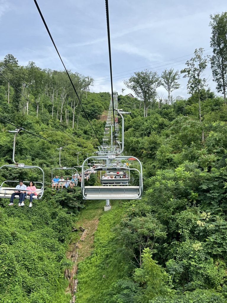 Pigeon Forge is totally a tourist town! Well… it is Dollywood’s home so I can see why. We hopped on our bikes and we cruised to the Old Mill Restaurant and Creamery area, enjoying nice ice cream and live music. Rode all the way to the island and back. This is a really nice town. The next day we originally planned on going to Dollywood but we decided to go visit Anakista in Gatlinburg instead. We read how the parking situation there is not great so we opted to take an uber instead. We could not believe that there are only a handful of uber drivers there! The guy who took us gave us his direct number just in case. Gatlinburg is only about twenty minutes away surrounded by the Smoky Mountains. We took the chairlift up and enjoyed the beautiful view. We headed back down to explored the town, grabbed some lunch, then headed back up at night to experience Astra Lumina, which was really cool before heading back to the campground. Next day we stayed in and enjoyed the campground amenities and we went to Dolly’s Stampede Show for dinner. Very nice show, best part: seeing our kids’ faces when they placed a whole little chicken on our kids plate! Oh how I wish I filmed it, they were traumatized and us parents couldn’t stop laughing.