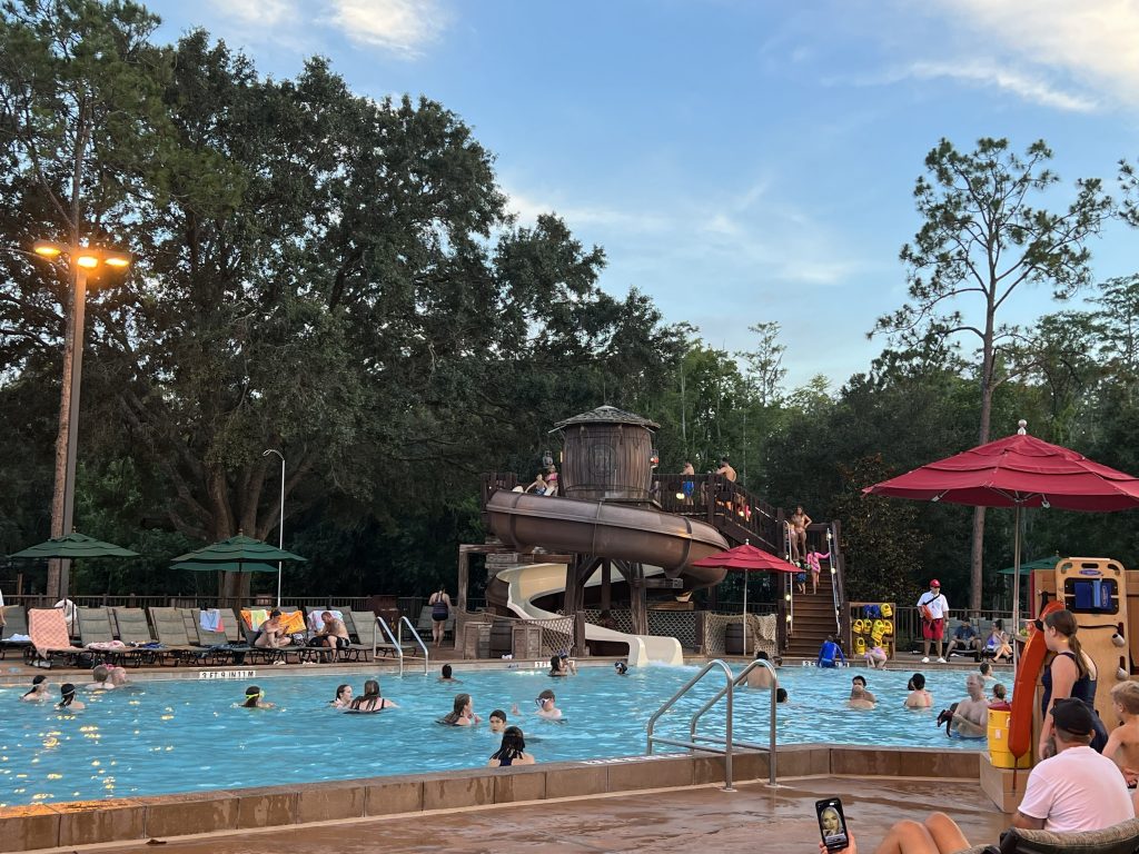 Day three we utilized the bus system again and we waited a very long time for our bus to arrive. We were thankful that this was an option and that we didn’t have to drive but I did not anticipate how long we would have to wait. It was all in perfect timing because we went to Typhoon Lagoon Waterpark and it was raining. Just before we arrived, they cleared the rides due to lightning so many people left and all rides reopened just as we entered the park so there were almost no lines for all the cool water rides! Thank you Lord. My favorite part, that humongous lazy river! That was so much fun, we went around it A LOT! The wave pool was the strongest one we’ve experienced so that was a treat. We enjoyed some fish tacos before taking the bus back to camp. The wait time this time was decent so it a win for the day.