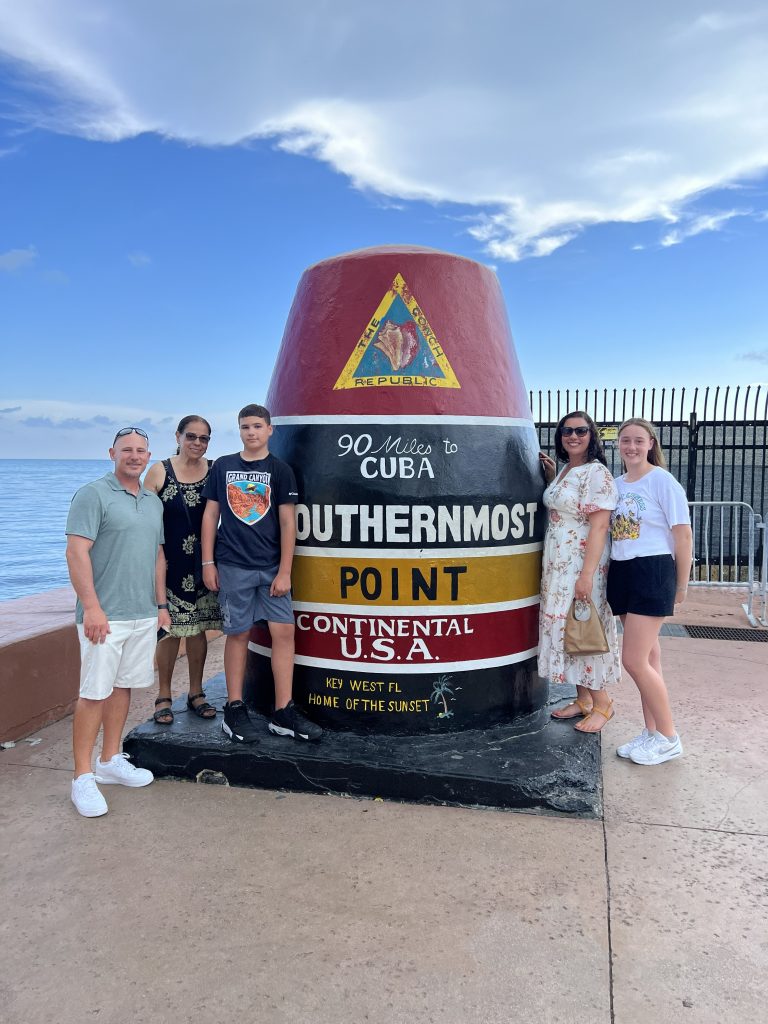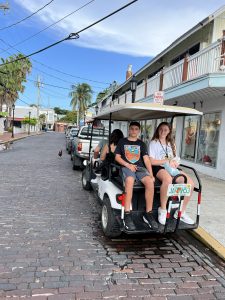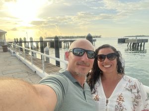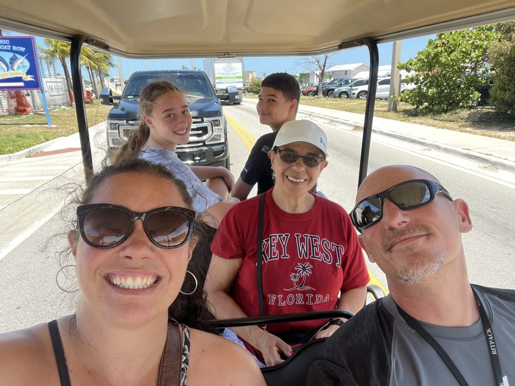 After this, we headed south, mesmerized by the 100 miles of clear water around us until making our way to Key West. We made it to Leo’s Campground to drop the RV off and we hopped on our Golf cart rental to check this place out! It was a crazy experience to be able to ride on the road with cars all around us as we made our way to the Southernmost Point Buoy, Duval Street, shop, and eat some Key Lime Pie. We drove back to drop the clan off before going back out for our anniversary dinner at Latitudes, a beautiful fancy restaurant on a private island with amazing views and majestic sunsets.