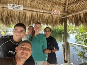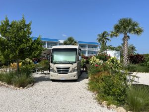 Finally! We are heading to the Keys! First we just had to stop at the Freedom Factory in Bradenton for our Cletus fan in the car, he saw them testing a car so he was in heaven. I wanted my mom to experience this part of the trip with us so she landed in Miami International Airport and I had her uber over to the local Walmart where we were parked waiting for her. We didn’t want to risk driving an RV in the airport so we figured this was a better option. We stocked up on food and merch before making the beautiful scenic drive with miles and miles of ocean on both sides. We arrived at our site for the night, Key Largo Kampground. This place was very nice, I booked a water front thinking we could go swimming but I was wrong, it’s more of a marina so it’s deep water but still a nice place with a nice view.