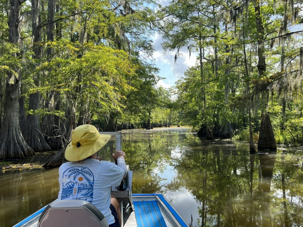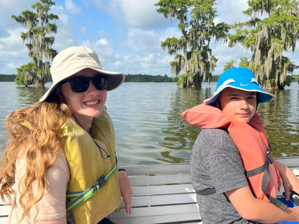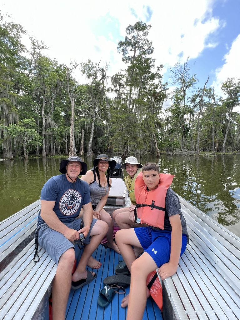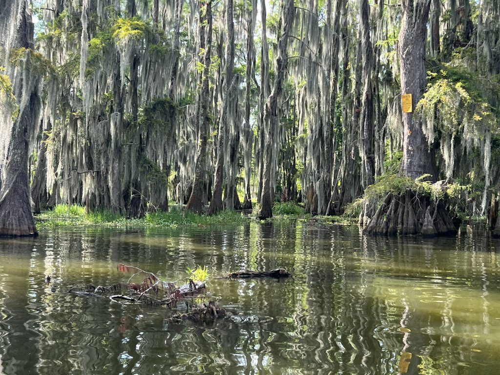 After a lovely yummy breakfast, we proceeded to our private Swamp Tour on beautiful Lake Martin in Breaux Bridge Louisiana. We saw beautiful trees, a huge Blue Herron, and many baby alligators! After this cool experience, we headed to the much anticipate: New Orleans.