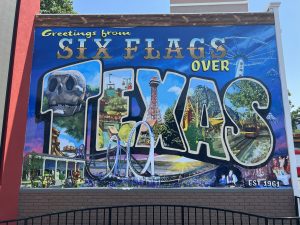 Off we went again on a full driving day to start off. After a nice fried chicken dinner, we spent the night in our first Cracker Barrel of the trip in Tucson, Arizona. Around our next 500 miles driving mark, we rolled into a little town called Tatum in New Mexico. We were so excited to come here because doing some research, I found a spot where they offer free overnight stay with power! We were the first to arrive so we didn’t believe it at first even though the signs stated that. Soon others pulled up too so it put our minds at ease until we started checking the weather app and Tatum was right in a tornado watch zone! (*freaked out emoji*) The wind picked up and so did our prayers. Thankfully we were in the clear and we didn’t have a heart attack on our second day of this trip. (*happy face emoji*) After another all day drive and a Cracker Barrel night, we arrived at our first destination of this trip: Six Flags Over Texas in Arlington, Texas.