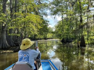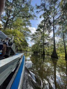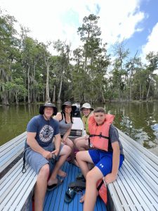 After a lovely yummy breakfast, we proceeded to our private Swamp Tour on beautiful Lake Martin in Breaux Bridge Louisiana. We saw beautiful trees, a huge Blue Heron, and many baby alligators! After this cool experience, we headed to the much anticipate: New Orleans.