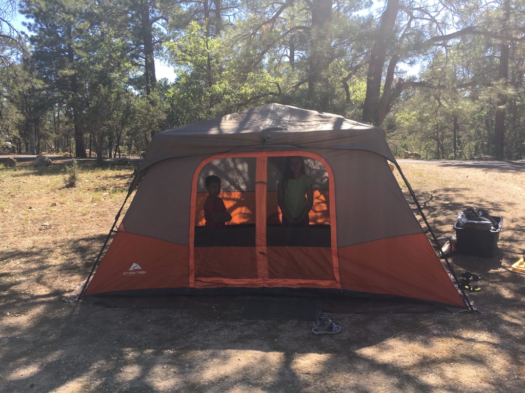 Hotels in Grand Canyon Village were over $200 a night so we opted to camp instead. I looked on the map and booked a site really close to the restroom. We knew we were only staying one night so we decided to just bring the minimum camping gear: an easy pop up tent, blow up beds, sleeping bags & pillows, and our camping toilet bucket for overnight. We had our cooler with food already so we restocked on ice and we grabbed subway sandwiches to eliminate any cooking and cleaning. Best part was seeing a deer family cross our campsite like it was no big deal, we were all mesmerized.