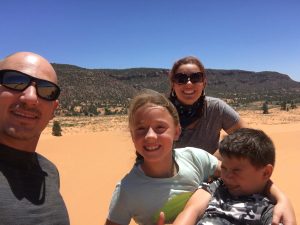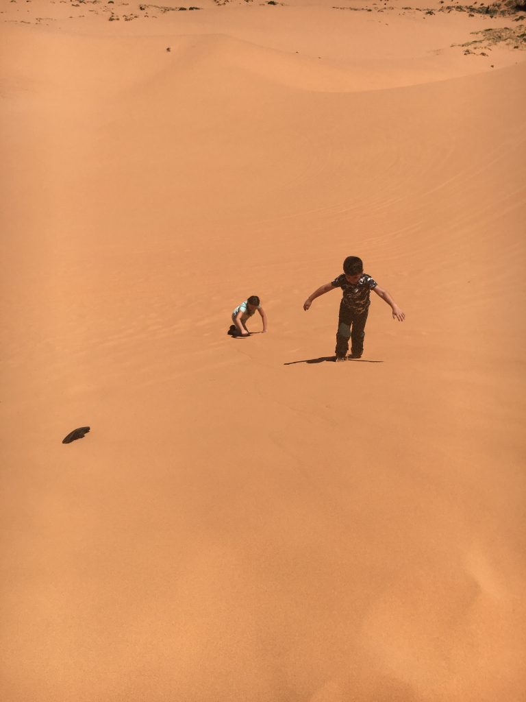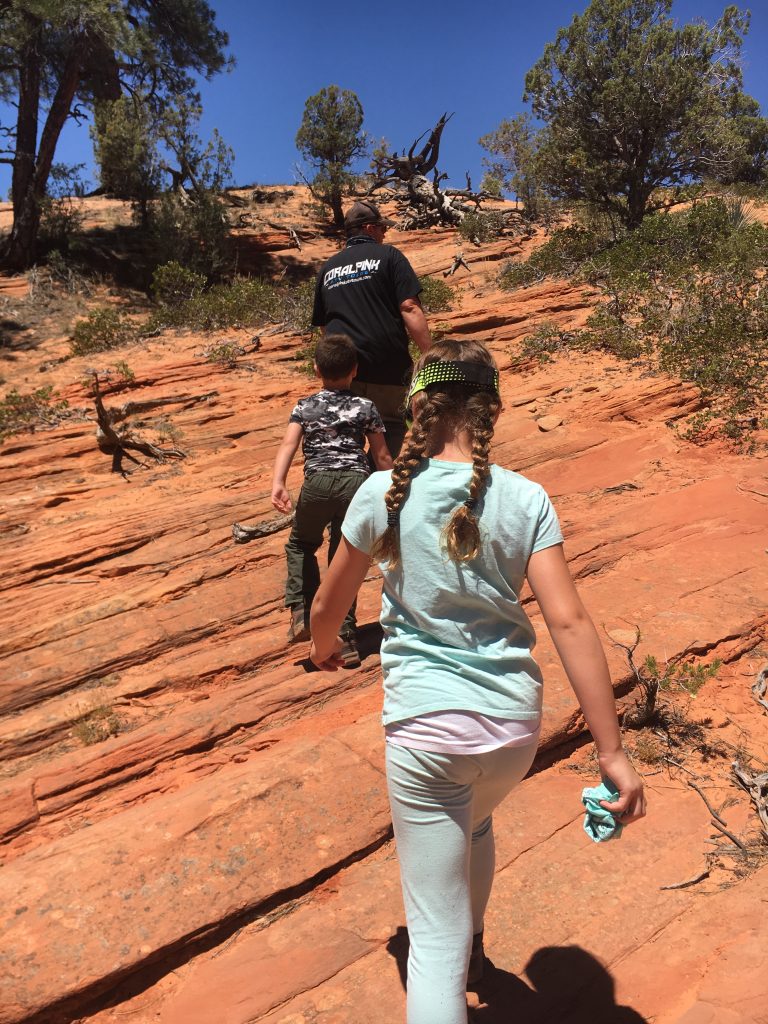 Day three was a super eventful day. Something we’ve never done as a family was ride ATV in the sand dunes so I noticed on google maps that there are sand dunes very close to where we were going so I made reservations to have a tour guide us through the pink sand dunes because I didn’t want to go by ourselves. This reservation was roughly $300 but it made me feel safer exploring knowing we would follow someone that has experience. I read up on this before we left so we were prepared with our high top boots and bandana to cover our faces. We were there for three hours driving around a four seater side by side ATV exploring the beautiful pink sand and climbing a huge sand mountain. The wind was blowing crazy so I was thankful for our bandanas as the sand actually hurt blowing on our faces which felt like at 50 miles per hour. After this exceptional experience, we made our way to my long time favorite place: Zion National Park. I have to say, it IS still just as magical as I remembered 23 years before.